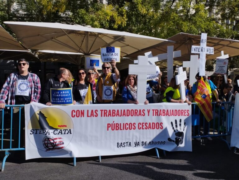 Los trabajadores públicos aragoneses en abuso de temporalidad han participadoesta mañana en Madrid en la protesta nacional para reclamar el derecho a la fijeza del personal en abuso de temporalidad de todas las Administraciones Públicas, así como para los ya cesados que presentaron reclamación contra su despido.El Sindicato de Trabajadores y Trabajadoras por el Empleo … Sigue leyendo STEPA y cientos de interinos reclaman ante el Congreso una ley que les haga fijos y solucione de una vez el abuso de temporalidad pública