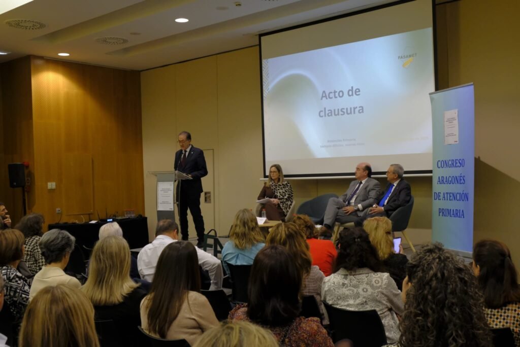 El director general de Asistencia Sanitaria y Planificación del Gobierno de Aragón, Ramón Boria, ha estado presente en el acto de clausura. El presidente de los Sindicatos Médicos, Leandro Catalán, también se ha dirigido a él para reclamar cuestiones como “mejorar la utilidad de las interconsultas, sin sobrecargar la actividad de los médicos de Primaria” y que las nuevas herramientas tecnológicas “sirvan de apoyo en el trabajo de los médicos de Atención Primaria, especialmente para reducir tareas de gestión, y no como está pasando con el programa de control de bajas laborales o en la renovación de tratamientos”.