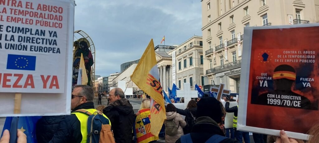 El sindicato aragonés STEPA ha participado esta mañana en una nueva concentración nacional frente al Congreso de los Diputados, para reclamar la fijeza de todos los interinos en abuso de temporalidad, cumpliendo así con la legislación europea y las sentencias del Tribunal de Justicia de la Unión Europea (TJUE). Los representantes de las distintas organizaciones de interinos se han reunido con los parlamentarios para recordar que esta situación puede suponer para España multas de hasta 3.000 millones de euros, antes de fin de año.